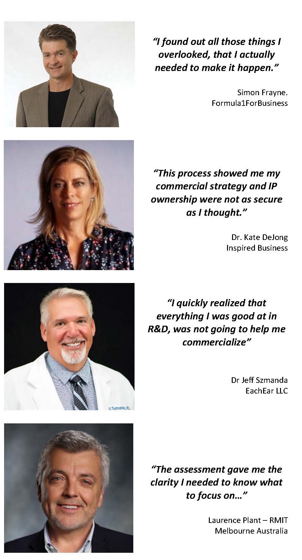 • Inventors serious about commercial outcomes
